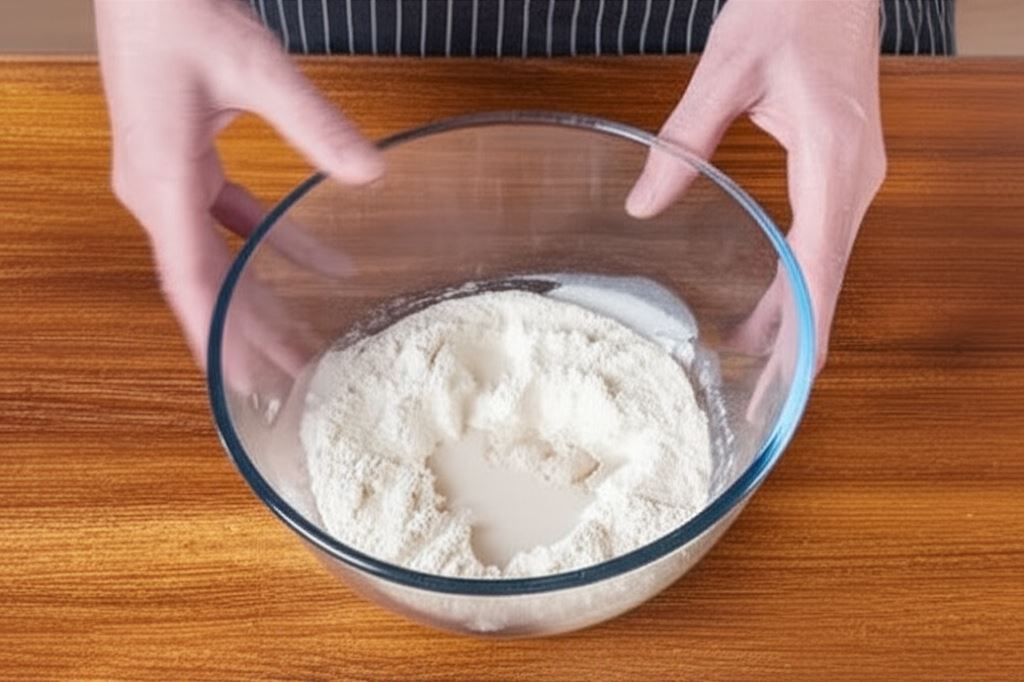 Zmiksuj mąki pszenną i ziemniaczaną, piwo oraz jajko, następnie dodaj sezam.