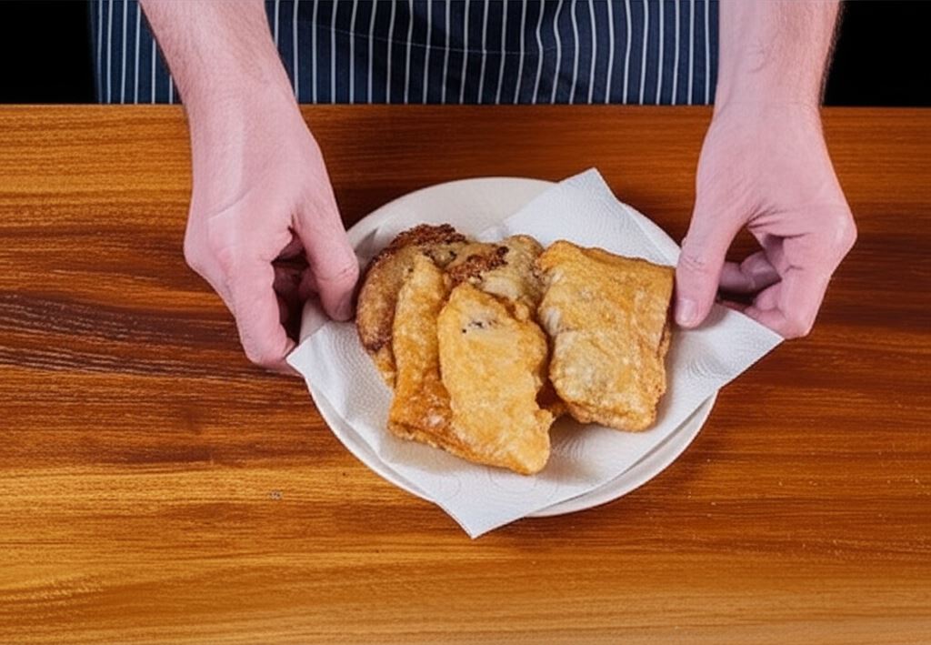 Odcedź na ręczniku papierowym od zbytecznego tłuszczu.