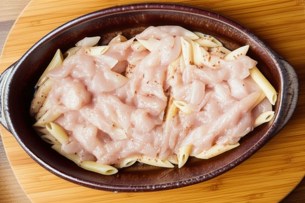 Kremowa zapiekanka z dwoma rodzajami mięsa to prawdziwa uczta dla podniebienia! Połączenie delikatnego filetu z kurczaka i soczystego mięsa mielonego tworzy harmonijny duet, który zadowoli nawet najbardziej wymagających smakoszy. Makaron ugotowany al dente, otulony aromatycznym sosem ze śmietaną i przykryty warstwą rozpuszczonego sera to gwarancja udanego obiadu.