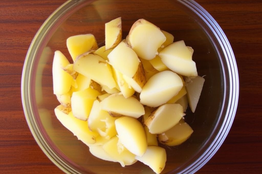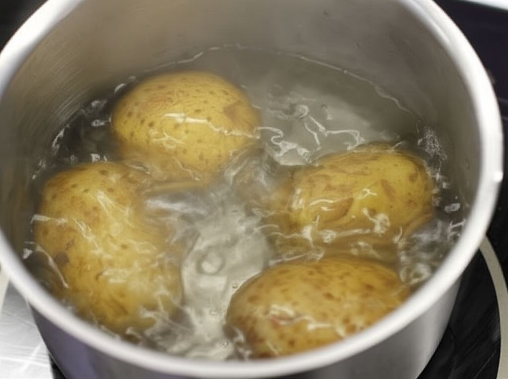 Ziemniaki starannie opłucz i ugotuj w skórkach w delikatnie posolonej wodzie. Kiedy staną się miękkie, odcedź je i pozostaw do wystygnięcia.