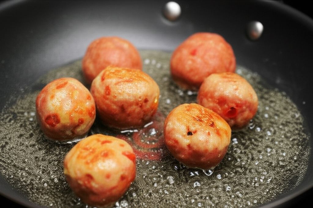 Uformuj niewielkie kulki i przysmaż na patelni, na gorącym oleju.