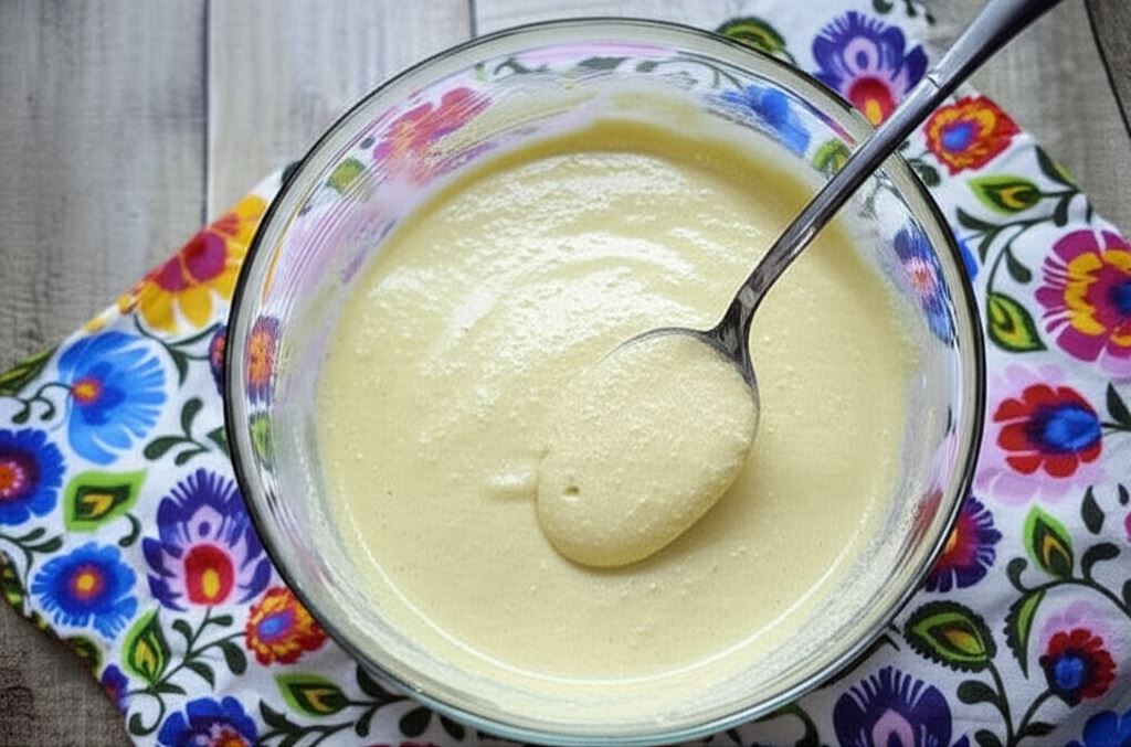 Wsyp mąkę ciecierzycową, mąkę ryżową, majonez, 1 łyżkę grzybowego sosu sojowego i zmiksuj jeszcze raz na gładką masę.