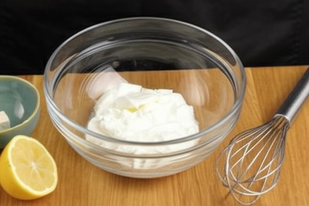 Jogurt umieść w miseczce, dodaj kostkę czosnkową i wyciśnij sok z cytryny. Starannie wymieszaj.