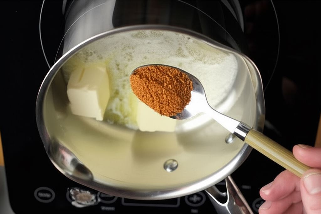 Roztop masło na patelni i wsyp przyprawę do mięs Knorr. Ogrzewaj aż na patelni utworzą się bąbelki.