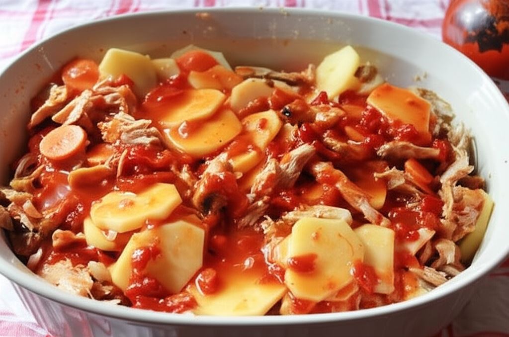 Aromatyczna zapiekanka ziemniaczana z soczystym kurczakiem to prawdziwy domowy klasyk w nowoczesnym wydaniu. Połączenie delikatnego mięsa z chrupiącymi ziemniakami i słodką marchewką tworzy harmonijną kompozycję smaków, która rozgrzeje każde podniebienie.