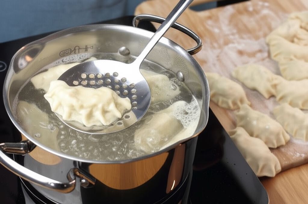Przygotowane pierogi wrzuć do osolonej wody i gotuj około 3-4 min od momentu wypłynięcia.