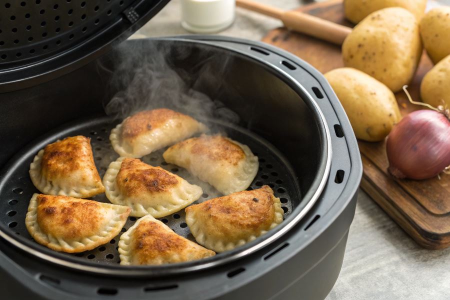 Czas smażenia i sposób ułożenia pierogów w koszyku frytkownicy mają kluczowe znaczenie dla końcowego efektu: