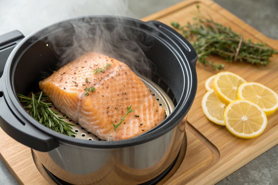 - Gotowanie na parze – idealnie zachowuje delikatną strukturę mięsa