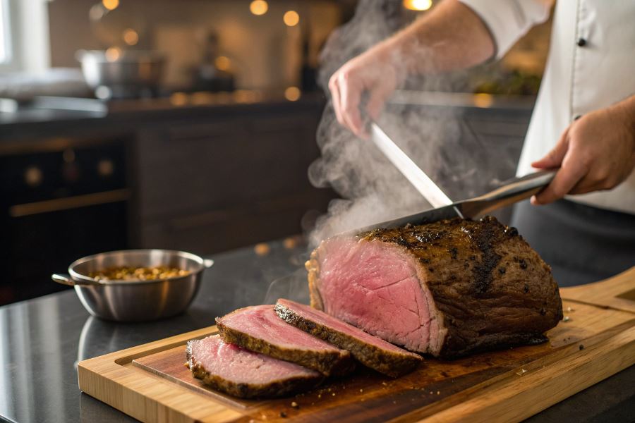 Warto pamiętać, że wołowina po ugotowaniu powinna „odpocząć” przez około 10-15 minut przed krojeniem. Dzięki temu soki równomiernie się rozproszą, a mięso będzie jeszcze bardziej soczyste i aromatyczne.