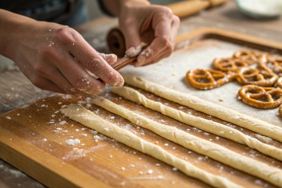 - Użycie specjalnej prasy do paluszków, dostępnej w sklepach z akcesoriami piekarniczymi