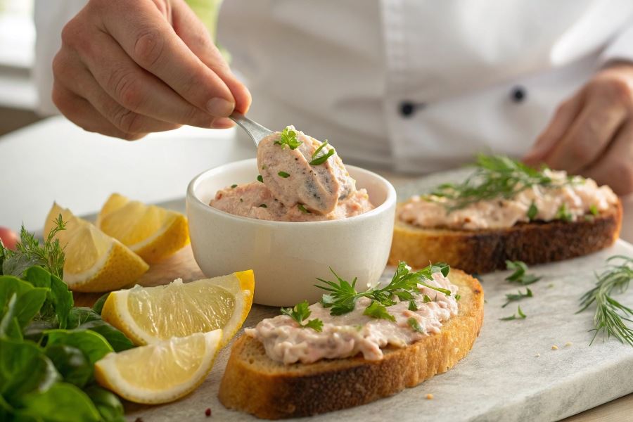 Serwowanie i wykorzystanie pasty z wędzonego pstrąga