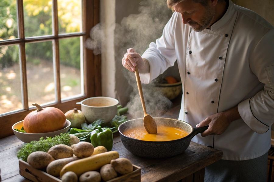 Zupa krem z dyni zyskuje idealną konsystencję dzięki naturalnym zagęstnikom, które podkreślają jej słodkawy smak. Ziemniaki stanowią doskonałą bazę zagęszczającą – wystarczy dodać jednego średniego ziemniaka na 4 porcje zupy. Podczas gotowania skrobia ziemniaczana naturalnie uwalnia się i wiąże płyn, tworząc aksamitną teksturę bez konieczności stosowania mąki.
