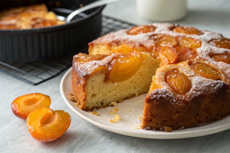 Ciasto upieczone w airfryer ma wyjątkową teksturę – jest wilgotne w środku i przyjemnie chrupiące na powierzchni, co doskonale komponuje się z soczystością moreli.