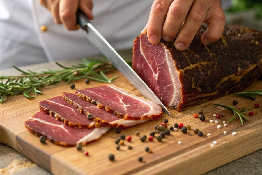Schab dojrzewający stanowi kwintesencję tradycyjnego rzemiosła mięsnego, łącząc prostotę składników z zaawansowaną techniką obróbki.