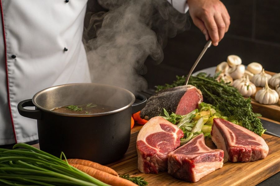 Kości szpikowe to sekretny składnik mistrzowskiego rosołu wołowego. Szpik kostny zawiera związki smakowo-zapachowe, które podczas powolnego gotowania przenikają do wywaru, nadając mu niepowtarzalną głębię i umami. Warto naciąć kości wzdłuż, aby szpik miał lepszy kontakt z wodą.