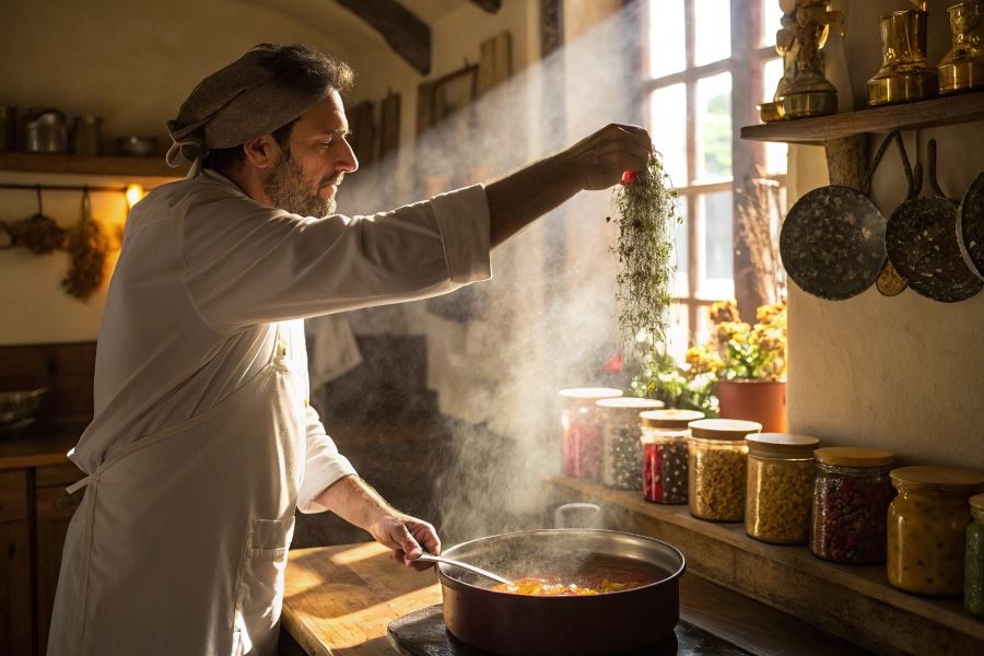 Zupa rybna nabiera wyrafinowanego charakteru dzięki ziołom prowansalskim. Dodane do bulionu wraz z szafranem tworzą autentyczną bazę dla owoców morza i białych ryb. Najlepiej sprawdzają się w tradycyjnej bouillabaisse lub lżejszych zupach z dorszem czy miętusem.