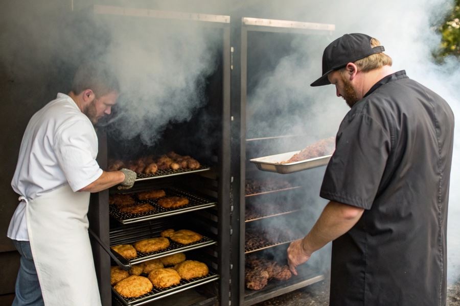 Ta technika doskonale sprawdza się przy wyrobie kiełbas, boczku czy karkówki. Mięso wędzone na ciepło ma bardziej miękką konsystencję, jest częściowo lub całkowicie ugotowane i charakteryzuje się intensywnym, ale mniej złożonym aromatem dymu.