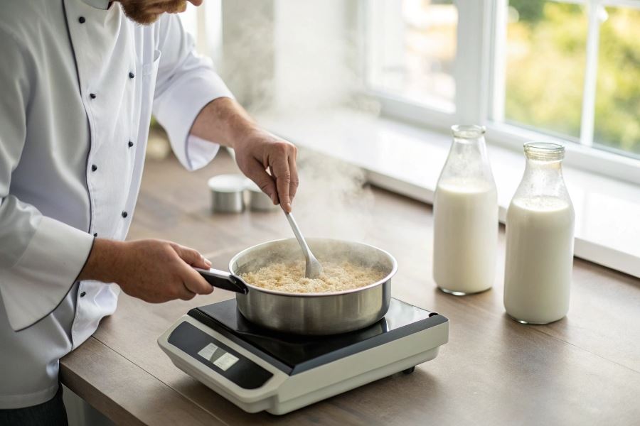 Perfekcyjna owsianka na mleku wymaga zachowania proporcji 1:2 – jedna część płatków owsianych na dwie części mleka. Dla jednej porcji najlepiej użyć 50 g płatków i 100 ml mleka. Przy przygotowaniu owsianki na mleku kluczowa jest temperatura – mleko należy podgrzewać powoli na średnim ogniu, dodając płatki dopiero gdy zacznie się delikatnie gotować.