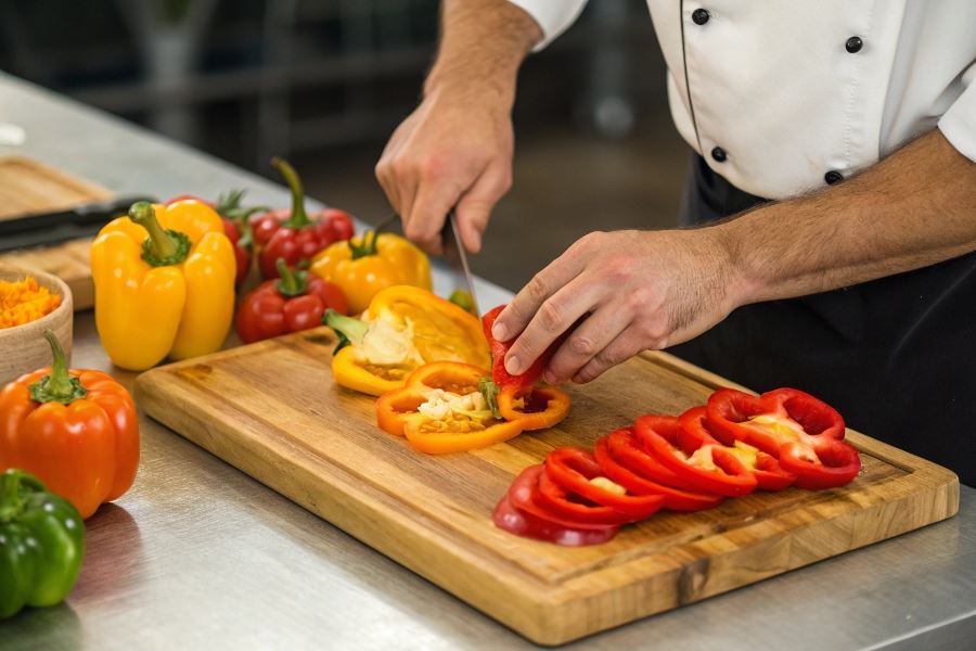 Do profesjonalnego krojenia papryki warto zainwestować w nóż szefa kuchni z ostrzem 20 cm lub specjalny nóż do warzyw z wklęsłym ostrzem. Alternatywnie, dla osób przetwarzających duże ilości papryki, praktycznym rozwiązaniem są krajalnice z wymiennymi ostrzami, pozwalające na szybkie uzyskanie kostek lub pasków o jednakowej wielkości.