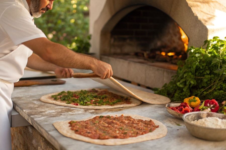Tradycyjne przygotowanie wymaga rozłożenia cienkiej warstwy farszu na rozwałkowanym cieście i pieczenia w bardzo gorącym piecu (najlepiej kamiennym lub opalanym drewnem) przez 2-3 minuty. Nowoczesne metody pozwalają na przygotowanie lahmacun w piekarniku domowym rozgrzanym do maksymalnej temperatury (220-250°C) na kamieniu do pizzy, co daje zbliżony efekt.