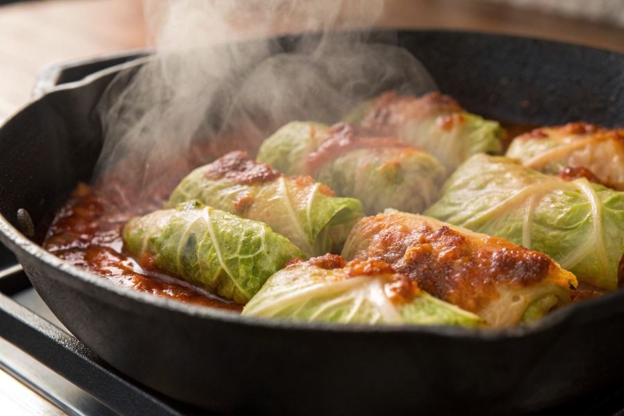 Sprawdź temperaturę wewnętrzną – powinna wynosić minimum 75°C, aby mieć pewność, że gołąbki są bezpieczne do spożycia.