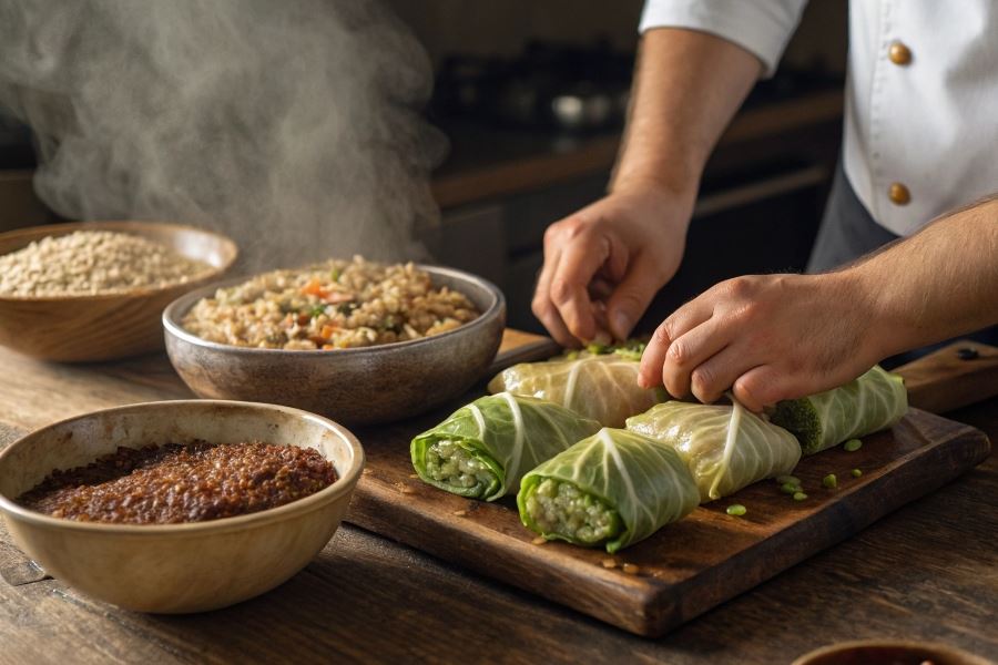 Bulgur i kuskus wprowadzają do gołąbków śródziemnomorski akcent. Bulgur, będący kaszą z gotowanej pszenicy, nadaje nadzieniu przyjemną, ziarnistą strukturę, podczas gdy drobny kuskus tworzy delikatniejszą konsystencję. Oba produkty szybko przygotować, co znacząco skraca czas przygotowania gołąbków.
