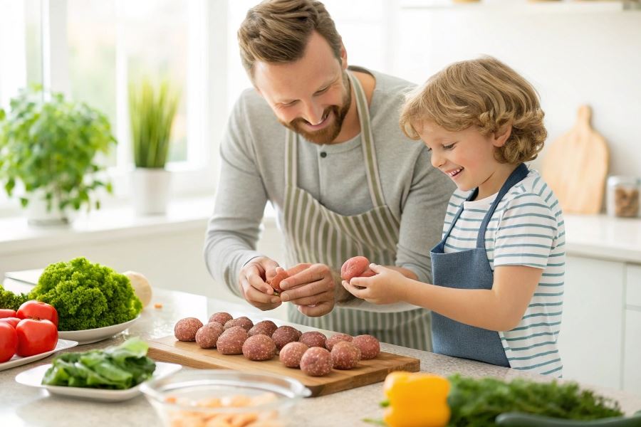 Formowanie małych pulpetów (3-4 cm średnicy) ułatwia dzieciom samodzielne jedzenie i zapewnia równomierne gotowanie. Warto stosować technikę gotowania na parze zamiast smażenia – zachowuje więcej składników odżywczych i eliminuje dodatkowy tłuszcz.
