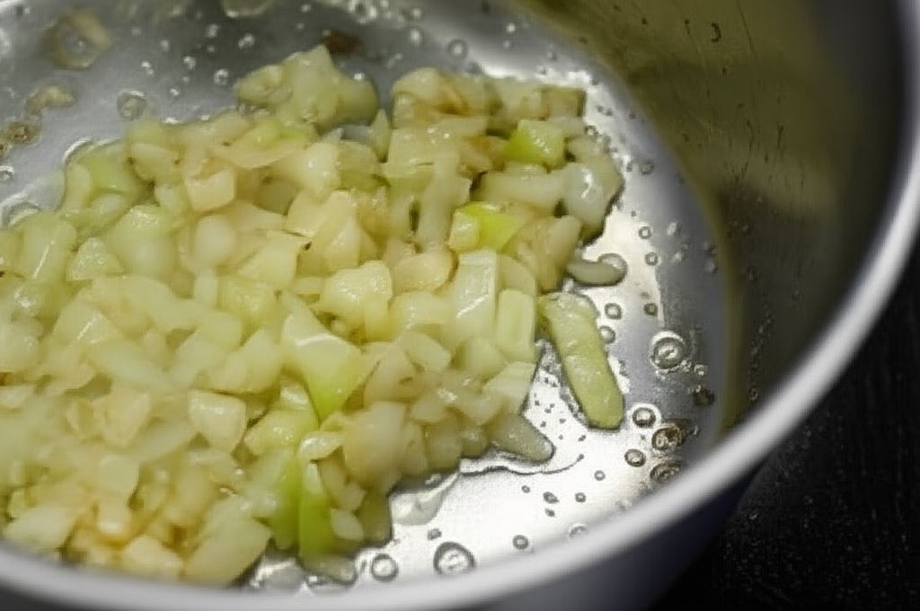 Cebulę i czosnek drobno posiekaj i zrumień krótko na oleju.