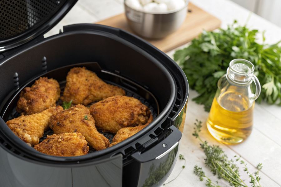 Dla osób dbających o linię, airfryer oferuje dietetyczne warianty przygotowania kurczaka – bez panierki, z minimalną ilością oleju (wystarczy spryskiwacz) i lekkimi dodatkami jak cytryna i świeże zioła. Taki kurczak zachowuje soczystość i smak przy znacznie obniżonej kaloryczności w porównaniu do tradycyjnych metod smażenia.