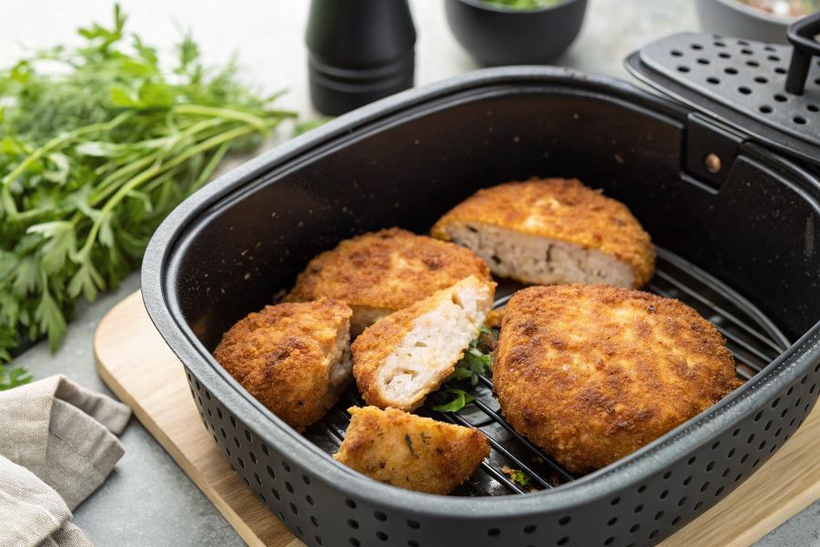 Kotlety schabowe, mielone czy drobiowe – wszystkie zyskują nową jakość dzięki obróbce termicznej w airfryer, zachowując swoją charakterystyczną soczystość przy jednoczesnym ograniczeniu zawartości tłuszczu.