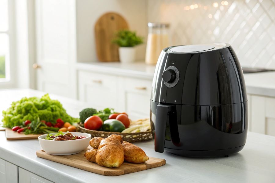 Aspekt zdrowotny – potrawy przygotowane w frytkownicy powietrznej zawierają znacznie mniej kalorii i tłuszczów nasyconych, co czyni je zdrowszą alternatywą dla tradycyjnie smażonych dań.