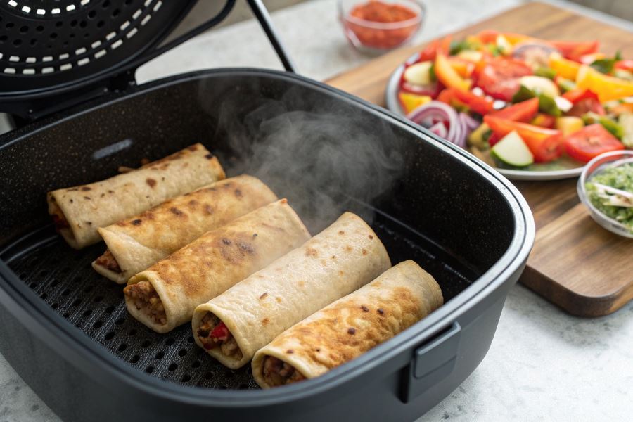 Airfryer idealnie nadaje się do przyrządzania lawasza z farszem, ponieważ zapewnia równomierne rozprowadzenie gorącego powietrza wokół potrawy. Dzięki temu lawasz zyskuje chrupiącą teksturę na zewnątrz, jednocześnie zachowując wilgotność farszu wewnątrz. Temperatura w airfryer osiąga nawet 200°C, co pozwala na szybkie zapiekanie bez konieczności stosowania dużej ilości tłuszczu.