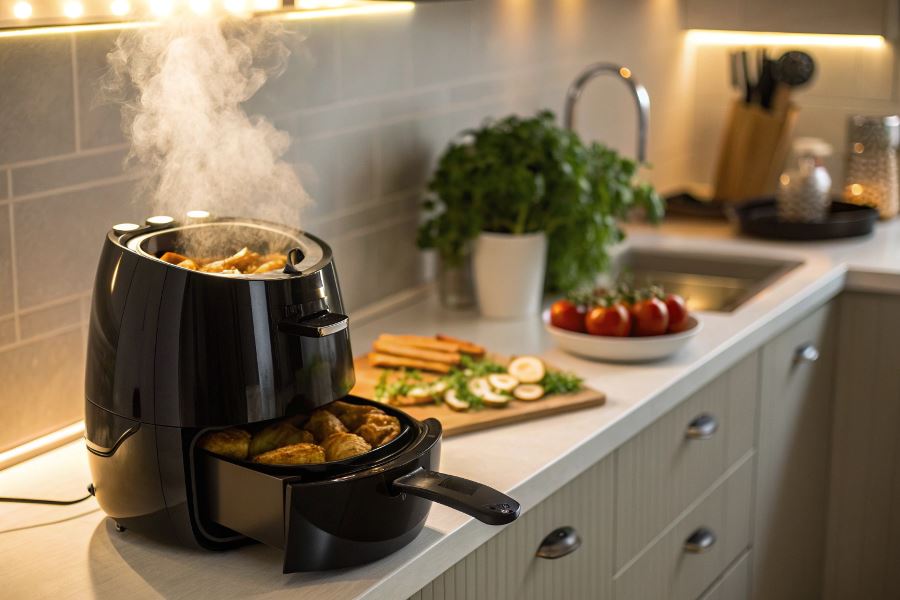 Airfryer wykorzystuje technologię cyrkulacji gorącego powietrza, która wymaga nawet do 90% mniej tłuszczu niż tradycyjne smażenie. To przekłada się bezpośrednio na mniejszą kaloryczność potraw oraz ograniczenie spożycia szkodliwych tłuszczów trans, powstających podczas smażenia w głębokim tłuszczu.