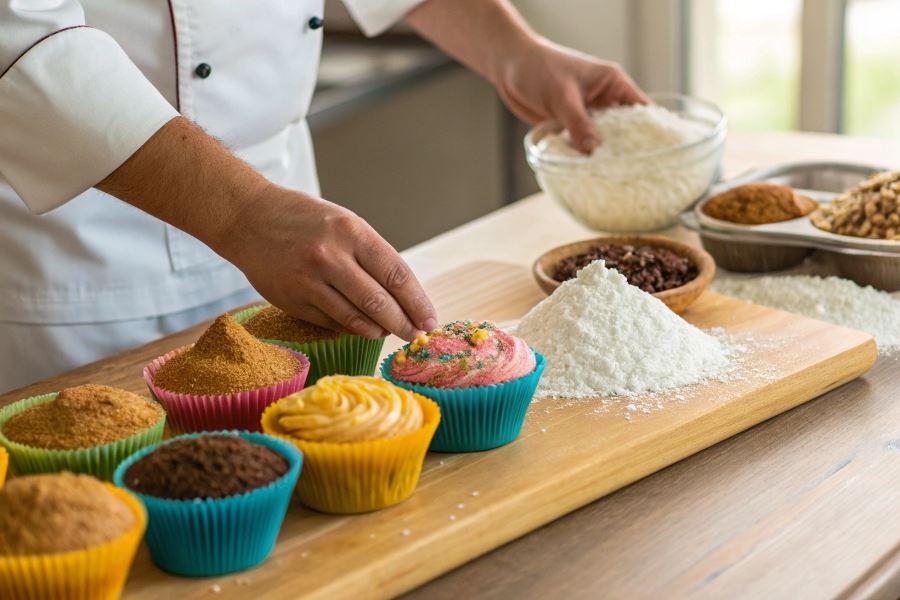 Mąka kokosowa wymaga znacznej modyfikacji proporcji – stosuj ją w ilości odpowiadającej 1/3 ilości mąki migdałowej przewidzianej w przepisie. Jej wyjątkowa chłonność wymaga zwiększenia ilości płynów o około 25-30% lub dodania dodatkowego jajka na każde 30g użytej mąki kokosowej. Nadaje wypiekam delikatny, tropikalny aromat.