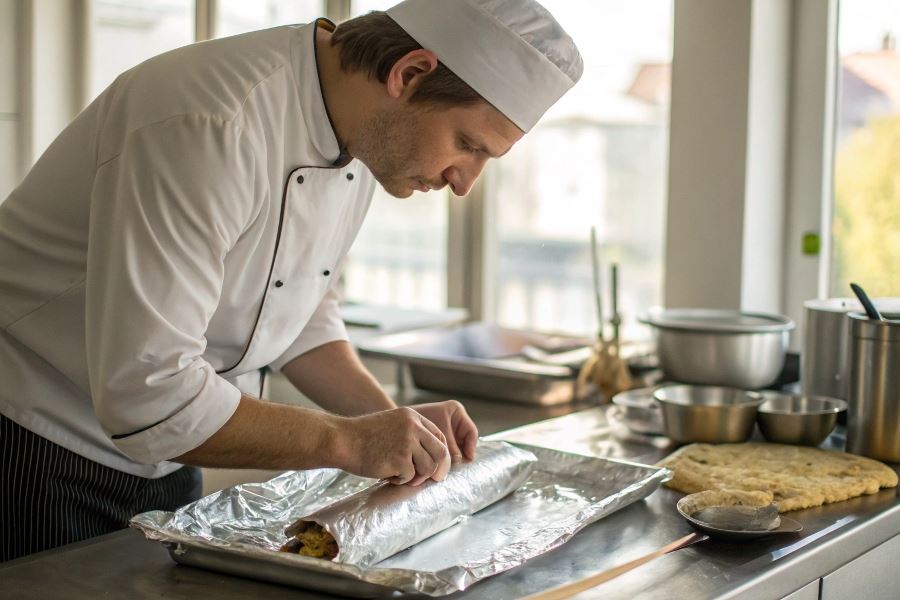 Technika luźnego pakietu sprawdza się przy pieczeniu warzyw i ryb – składniki układamy na folii, zostawiając 3-4 cm przestrzeni od krawędzi, a następnie składamy folię nad potrawą, tworząc luźną kopułę. Dzięki temu para może cyrkulować wewnątrz, co zapobiega rozgotowaniu delikatnych składników.