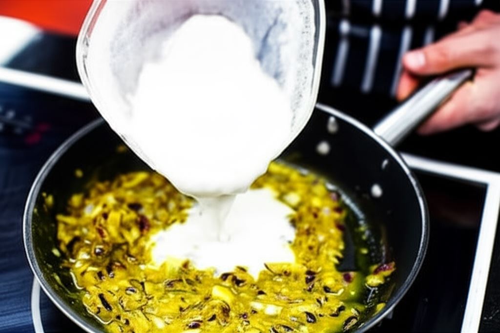 Na patelni przysmaż uzyskaną pastę, potem wlej napój kokosowy. Dodaj kostkę Rosołu z kury Knorr i sok z cytryny.