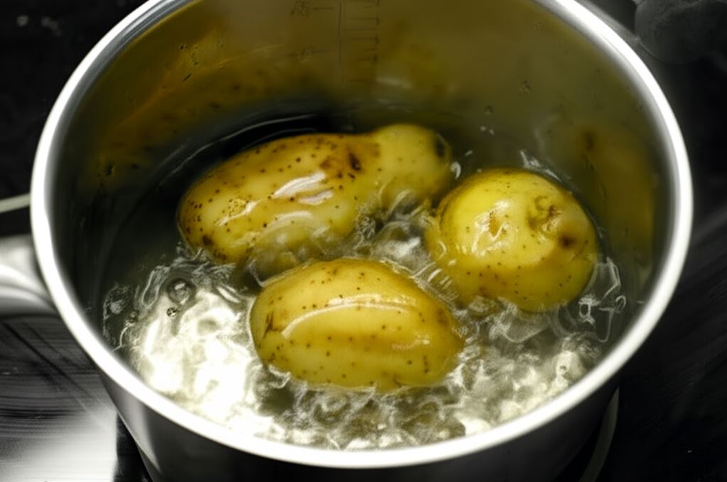 Ziemniaki starannie opłucz, potem ugotuj w skórkach do stanu półtwardości.