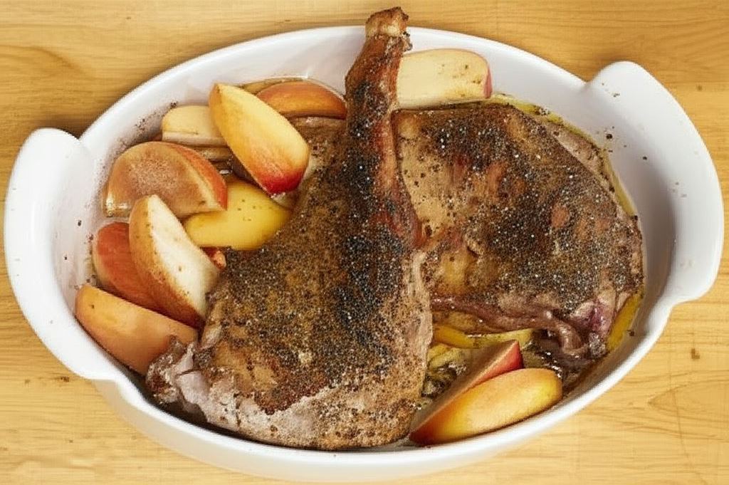 Gęsina to mięso o wyjątkowych walorach odżywczych, bogate w białko i nienasycone kwasy tłuszczowe. Tradycyjnie w Polsce gęś serwowano na św. Marcina (11 listopada), co wiązało się z zakończeniem roku gospodarczego. Połączenie gęsiny z jabłkami to klasyk polskiej kuchni, który łączy w sobie słodko-kwaśne nuty owoców z intensywnym smakiem mięsa.