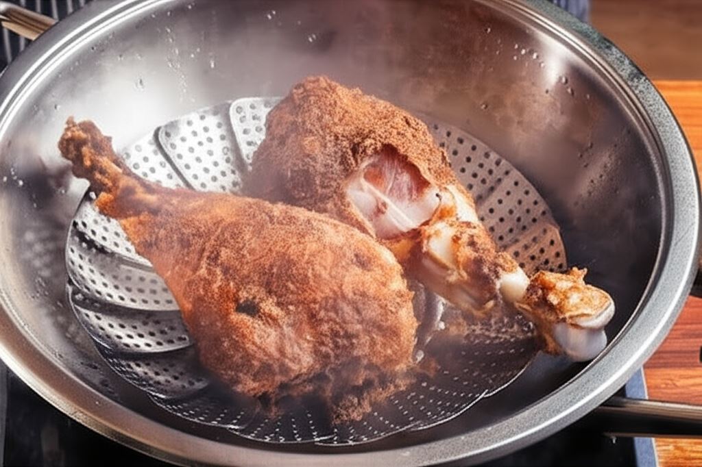 Odkryj prostotę i wyrafinowany smak indyka przygotowanego na parze! To danie, które zachwyca delikatnością i soczystością mięsa, a jednocześnie jest niezwykle łatwe w przygotowaniu. Wystarczy świeży indyk i kompozycja aromatycznych ziół, by stworzyć ucztę dla podniebienia. Mięso natarte mieszanką czosnku, pieprzu ziołowego, szałwii, słodkiej papryki, rozmarynu i majeranku nabiera niepowtarzalnego aromatu, który wypełni Twoją kuchnię.