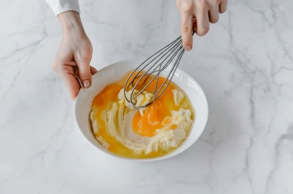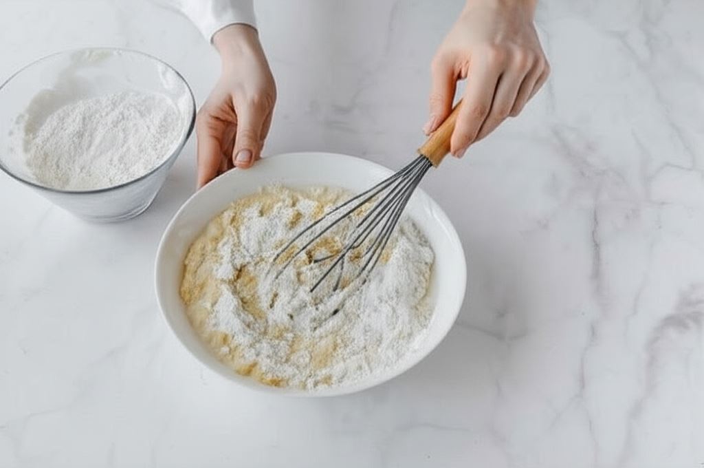 Po chwili dodajemy mąki i dolewamy mleko. Starannie mieszamy.