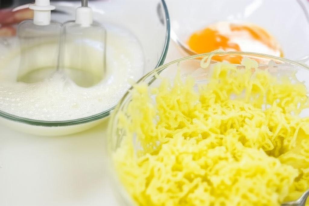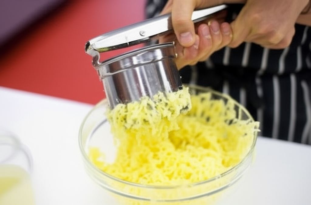 Ubite białka połącz z masą ziemniaczaną. Proszek do pieczenia zmieszaj z mąką, wsyp do masy i ostrożnie wymieszaj. Masę przypraw do smaku rozdrobnioną mini kostką Knorr.
