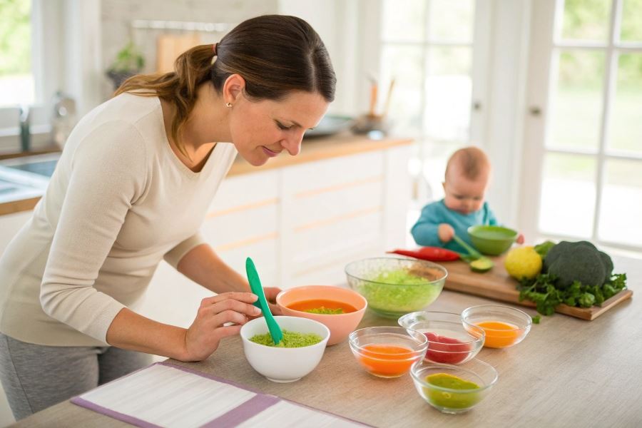 Dla niemowląt 6-9 miesięcy można przygotowywać zupy z drobnymi kawałkami warzyw. Wprowadzaj nowe składniki pojedynczo, obserwując reakcje dziecka przez 2-3 dni. Odpowiednie będą: