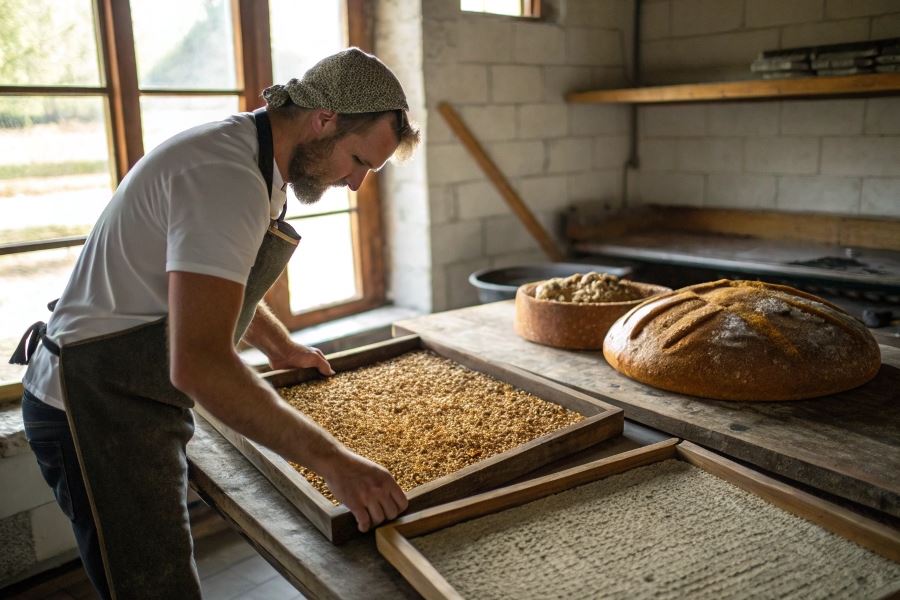 Słód piekarniczy powstaje w wieloetapowym procesie, który rozpoczyna się od namaczania ziaren zbóż, co inicjuje kiełkowanie. Podczas kiełkowania w ziarnie zachodzą złożone procesy enzymatyczne – skrobia przekształca się w cukry proste, a białka w aminokwasy. Po osiągnięciu optymalnego stopnia kiełkowania, ziarno jest suszone w kontrolowanych warunkach, co zatrzymuje procesy enzymatyczne i nadaje słodowi charakterystyczny aromat.
