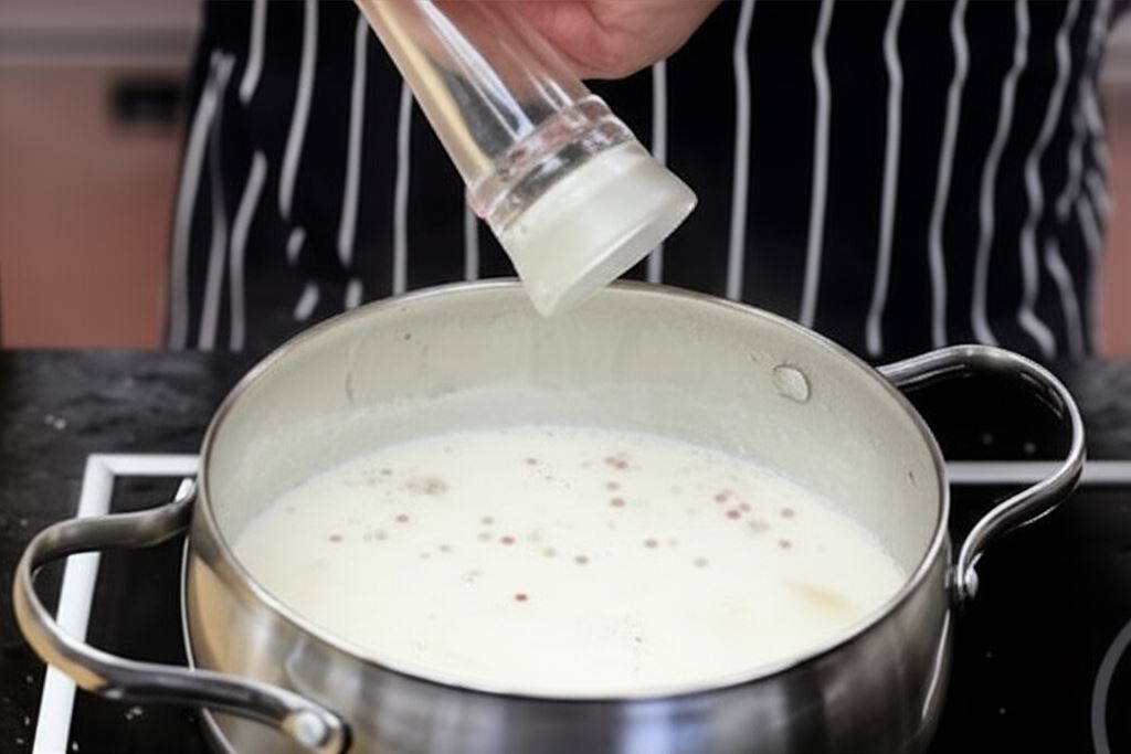 Wsyp do garnka zawartość opakowania Barszcz Biały Knorr z chrzanem i gotuj przez następne 10 minut.