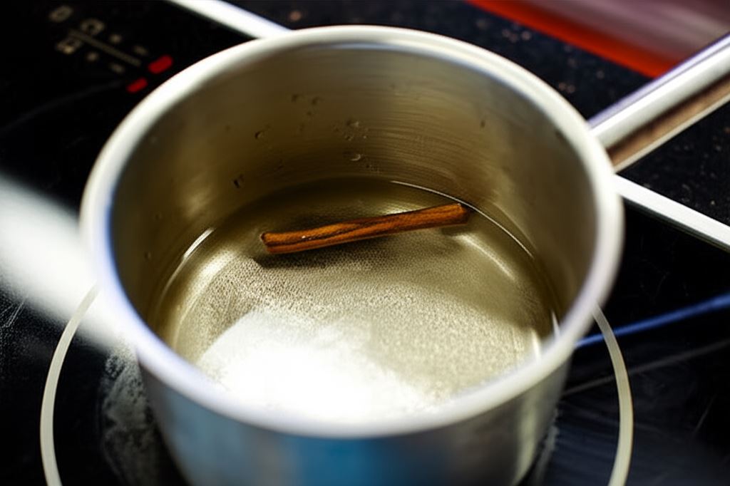 Gotuj cynamon w lasce przez 5 minut w 4 szklankach wody.