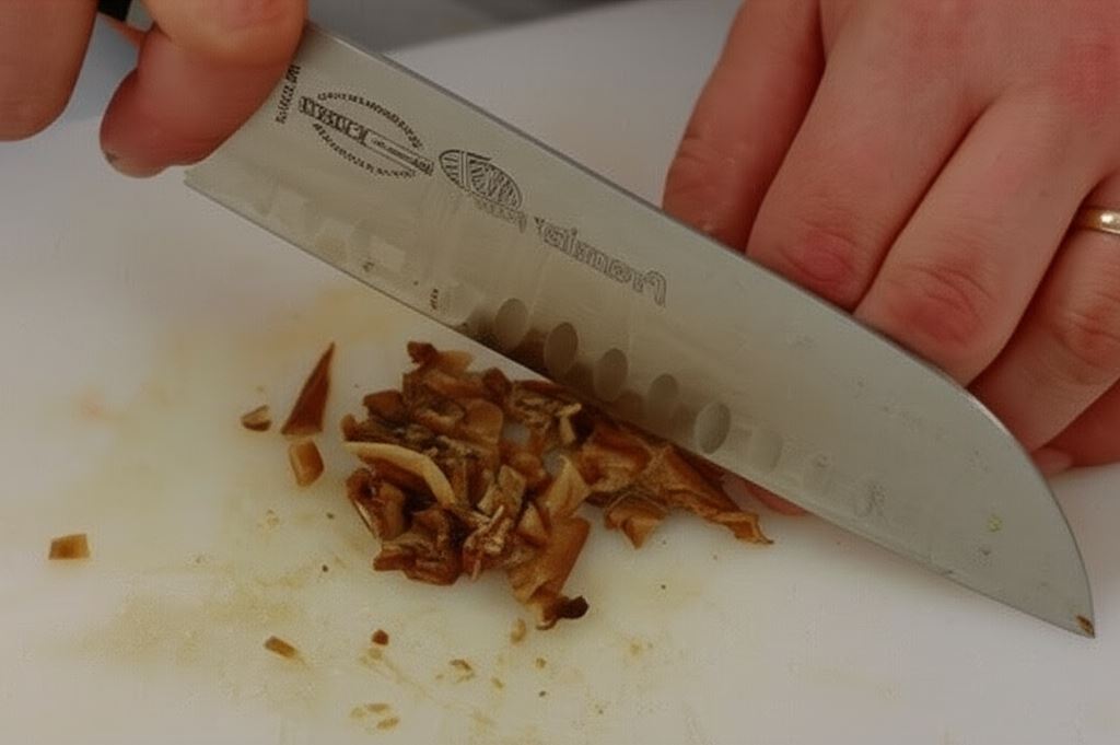 Poczekaj aż ugotowane grzyby wystygną i potnij je na drobne paseczki.