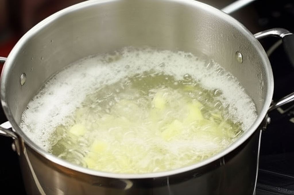 Ziemniaki obierz, pokrój w kostkę, wlej litr wody i gotuj aż będą miękkie.