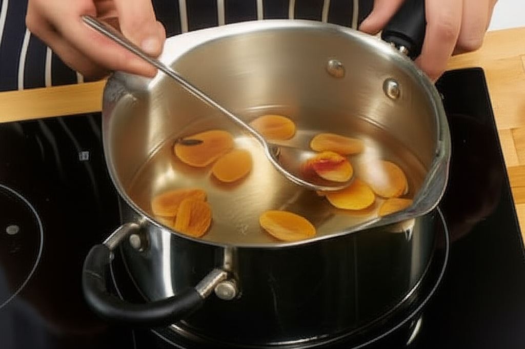 Gotuj 1 l wody razem z morelami i goździkami przez 10 min.