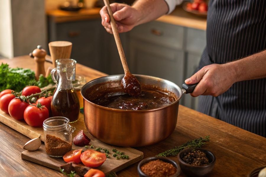 Sekret doskonałego sosu BBQ tkwi w odpowiednich proporcjach składników i długim czasie gotowania, który pozwala na pełne uwolnienie i połączenie aromatów.