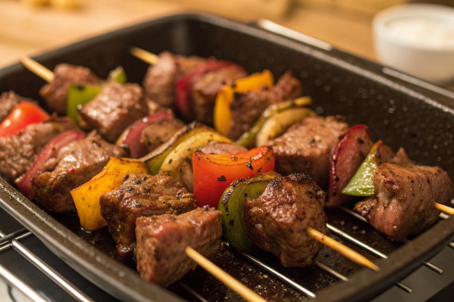 Szaszłyki wołowe z airfryer zachowują soczystość mięsa przy jednoczesnym uzyskaniu apetycznej, lekko chrupiącej powierzchni – wszystko to przy minimalnym użyciu tłuszczu i krótszym czasie przygotowania niż tradycyjne grillowanie.
